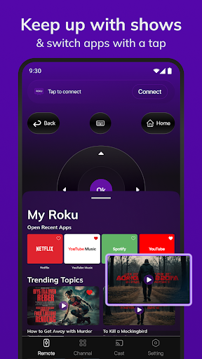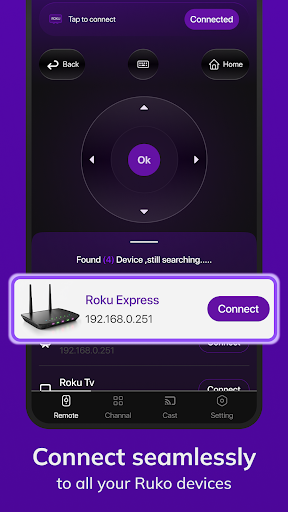 Roku Tv Remote Control turns your Android device into a universal remote for Roku TVs and streaming players. It offers simple navigation (D‑pad, playback, home/back, volume), voice and keyboard input for faster searches, auto-discovery/pairing over the same Wi‑Fi, optional IR control (if your phone supports it), and quick access to channels with favorites and store browsing/install.
