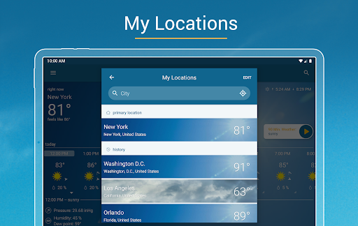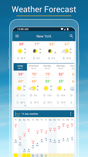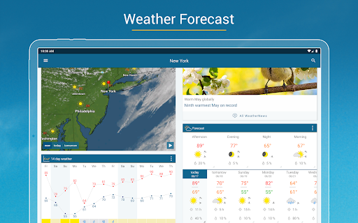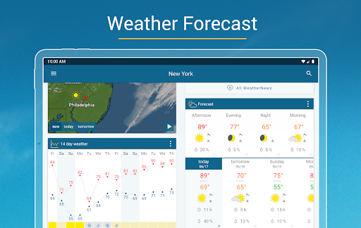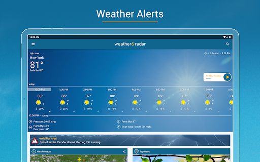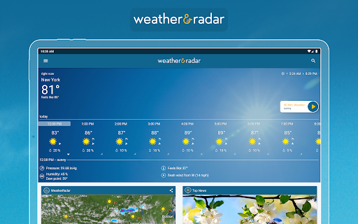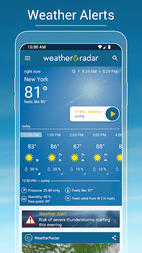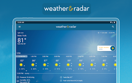 Comprehensive weather app with accurate hourly/daily forecasts, industry-leading interactive radar (rain/snow/wind/lightning), severe weather alerts, 90‑minute nowcast, UV and air quality info, widgets, ski reports, coastal/marine conditions, and Android Auto support.