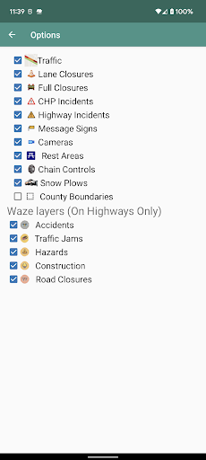 Accurate, official data refreshed frequently; useful camera snapshots; helpful layers like lane closures and chain controls; simple preference saving; optional geotargeted closure notifications.