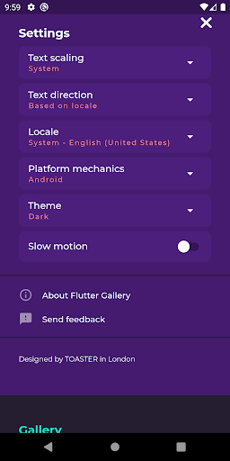 Flutter Gallery is a free showcase and learning app that demonstrates what the Flutter framework can do. It highlights polished UI patterns, provides interactive demos to feel performance and responsiveness, and includes runnable code snippets and samples developers can study or reuse.