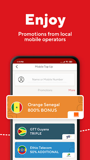 • Users sending mobile top-ups and occasional remittances to family in many countries