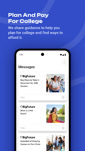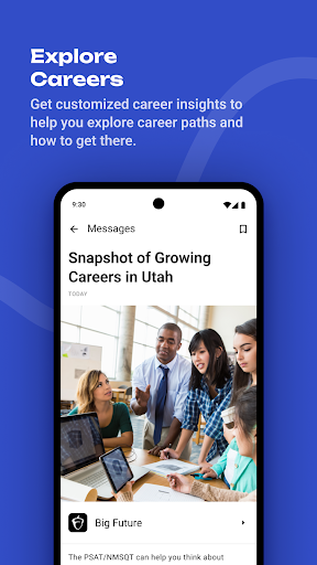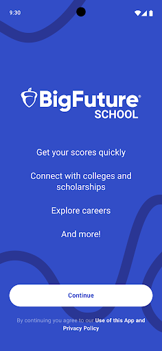 BigFuture® School is a free College Board app for U.S. students (13+) who took the digital PSAT/NMSQT, PSAT 10, or SAT School Day and provided a mobile number. It delivers quick access to official test scores, personalized college and scholarship connections, tailored career insights, and guidance on planning and paying for college.