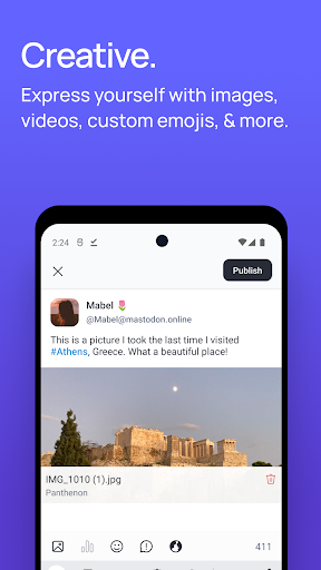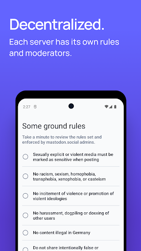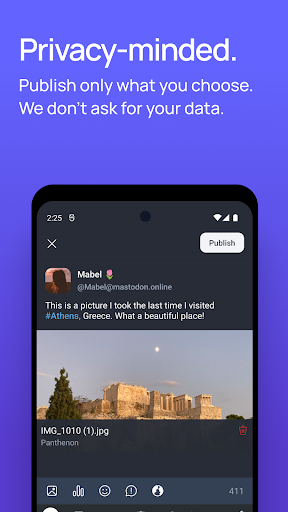 Official Mastodon client for Android that lets you join a decentralized social network, follow people and hashtags across servers, and read a strictly chronological feed without ads or engagement algorithms. It supports multiple accounts, lists, filters and content warnings, rich posting (polls, media, custom emojis), notifications, QR profile sharing, and a theme that adapts to your device.