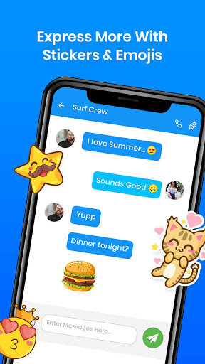 A free SMS/MMS client that enhances default texting with an inbox organizer (Personal/Transactions/OTPs/Offers), message scheduling, backup/restore, delivery confirmations, custom per-contact notifications, swipe actions, blocking, voice calls, emoji/stickers/GIFs, and an AI Buddy for assistance.