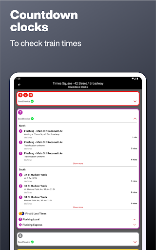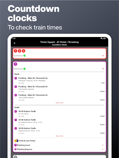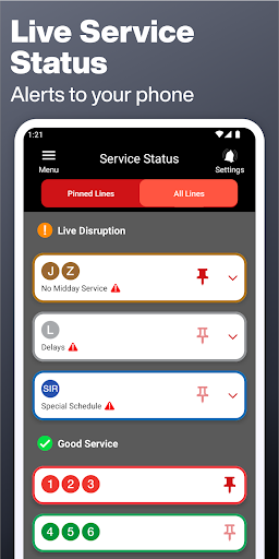 A dedicated NYC subway companion using officially licensed MTA maps with an offline map, point-to-point route planning, live service status, countdown clocks, nearby-station search, favorites, elevator/escalator alerts, and optional VIP extras like first/last train times, car-position tips, and an ad-free experience.