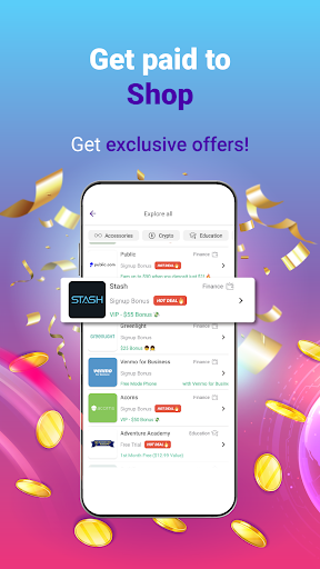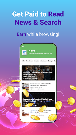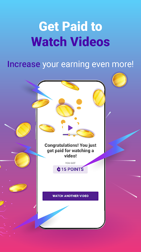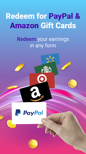A rewards app that pays small amounts of cash or gift cards for everyday mobile activities—listening to music/radio, playing games, taking surveys, reading news, shopping (with coupon detection via Accessibility API), charging/unlocking your phone, and watching short videos—then redeeming points to PayPal or popular gift cards.